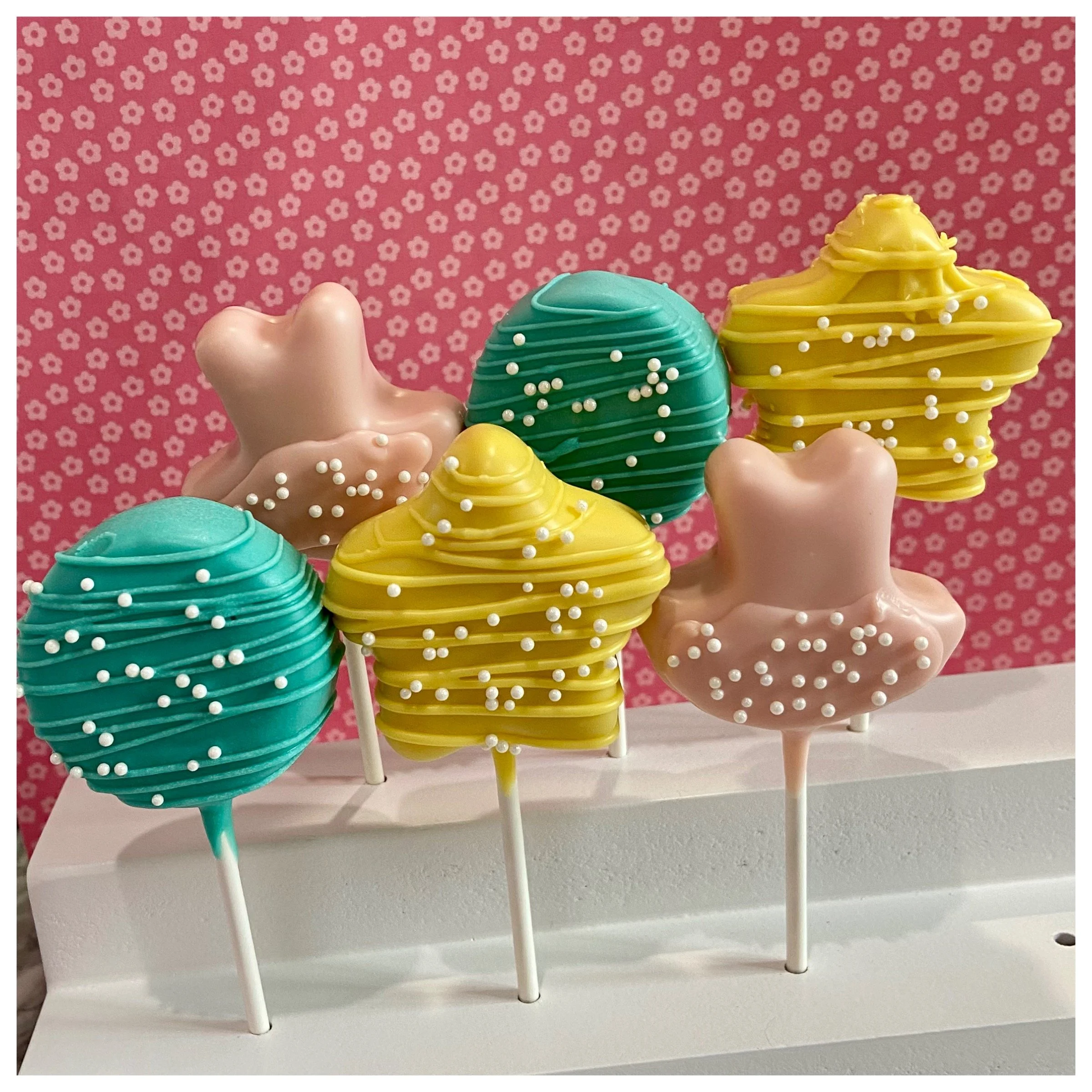 This Recital cake pop box features a dozen dance themed cake pops. This box contains 4 each of 3 designs: tutu, star, and disc shapes.